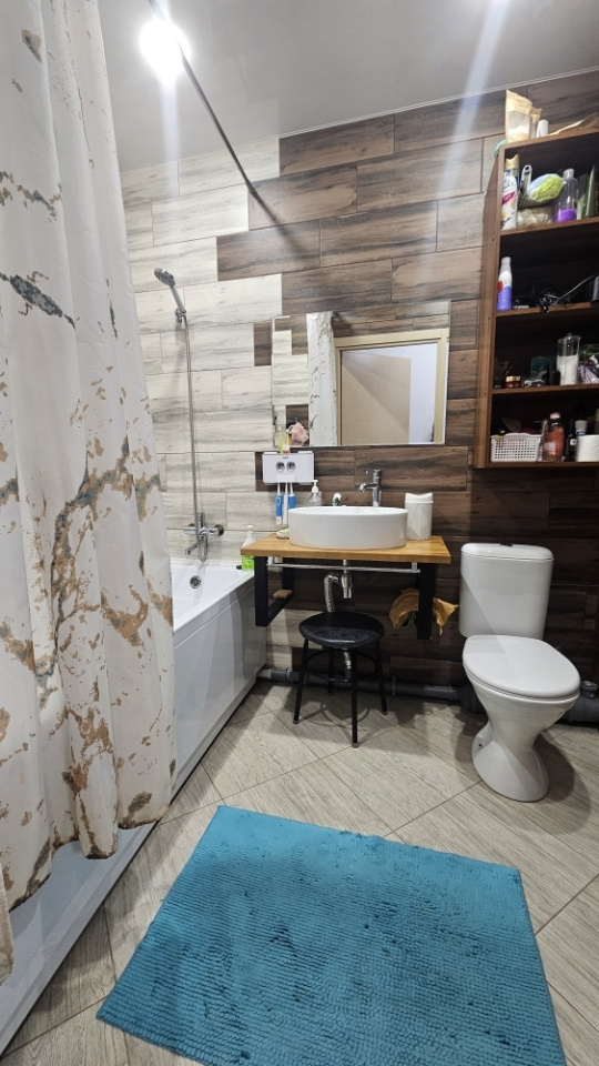 <p>Санузел совмещенный, оформлен в современном стиле с использованием качественных материалов. Из окон открывается приятный вид на городскую панораму. На балконе можно обустроить зону отдыха или использовать как дополнительное место для хранения.</p>
