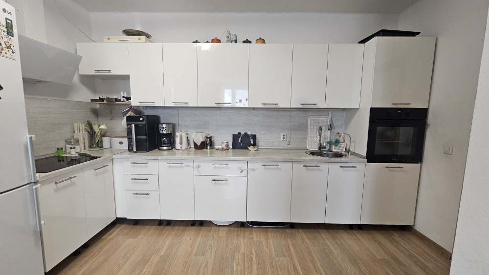 | <p>Продается просторная трехкомнатная квартира с евро-ремонтом в монолитном доме. Все комнаты изолированы , что обеспечивает комфорт проживания. В квартире выполнен свежий ремонт, стены украшены стильными обоями, полы покрыты качественным ламинатом. Просторная кухня 22кв.м., оборудована стильным кухонным гарнитуром с встроенной современной техникой (варочная поверхность, духовой шкаф, вытяжка, посудомоечная машина). </p>