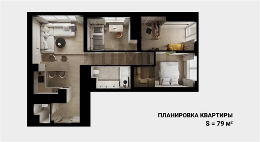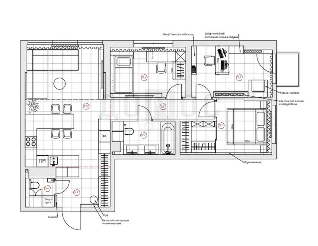 общая 79 м2, жилая 32,6 м2, кухни 27,2 м2 |