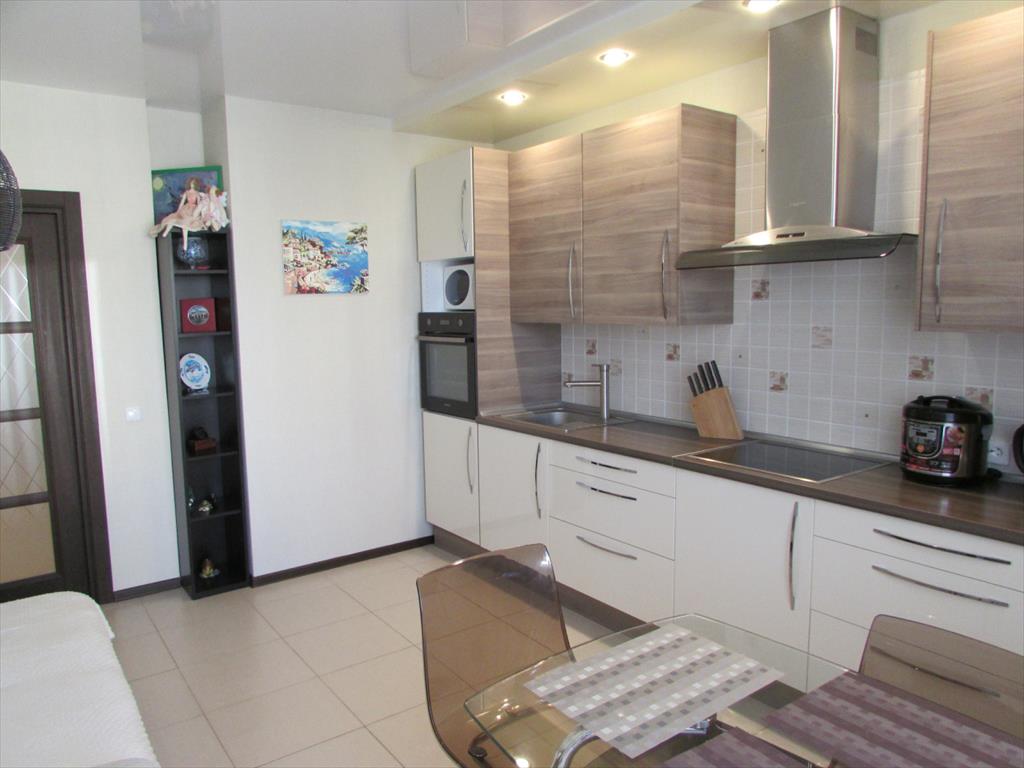 | <p>Квартира готова к переезду, сделан ремонт с использованием качественных материалов. Кухонный гарнитур с встроенной техникой включая встроенный холодильник. В ремонте ванной комнаты использовались только качественные материалы импортного производства в том числе вся сантехника, установлена большая ванна. Отличная планировка с функционалом двухкомнатной квартиры. Большая кухня гостиная. Большой коридор и большая ванная 8 м2. С лоджии открывается шикарный вид на город.</p>
