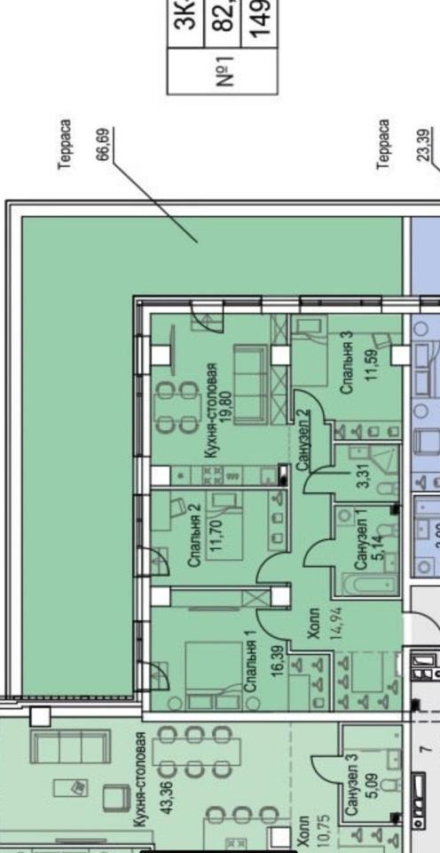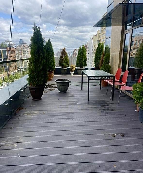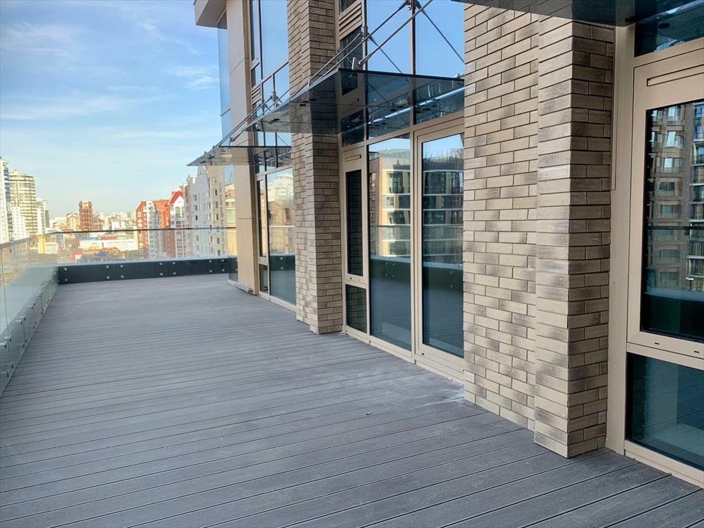 Из всех комнат апартаментов предусмотрен выход на собственную открытую террасу площадью 66 м2. На этой террасе сделан акцент проектировщиками. Она зрительно выделяется во всей концепции дома, эту квартиру не сложно различить с ул. Радищева и Шейнкмана. Единственная квартира с такой планировкой в резиденции. <br /> В данных апартаментах не сложно воплотить любой проект. Например, бьюти–лаб (поделив на 4 кабинета: студия маникюра, косметология, салон красоты и другие любые услуги, которые гармонично и прибыльно впишутся в данном престижном доме и районе. <br />Для жителей и гостей резиденции появится ресторан со входом из холла. <br />Ресепшн с расширенным консьерж-сервисом, где можно быстро решить вопросы, связанные с проживанием, и также заказать различные услуги: доставку еды, продуктов, воды, уборку, химчистку, выгул животных и полив цветов. <br />