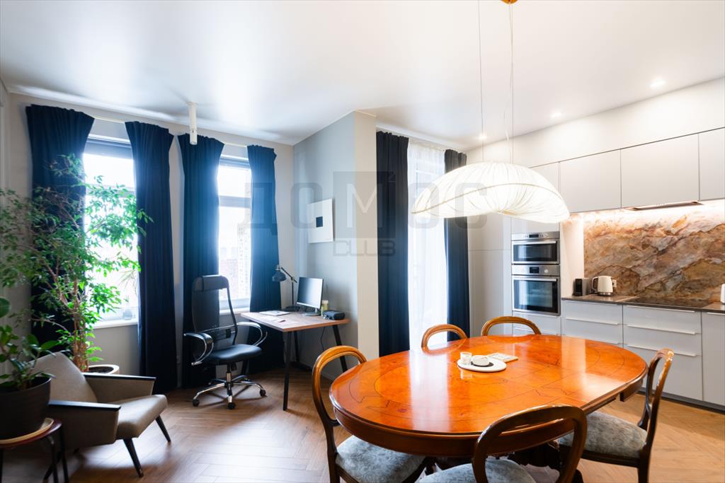 <p>Просторная площадь квартиры 105.2м. и высокие потолки 3 м – создают уют и свободу. Большая кухня гостиная, мастер спальня и кабинет, который можно переоборудовать под детскую.</p>