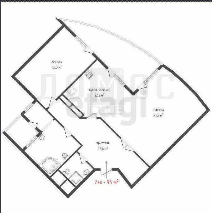 общая 95 м2, жилая 30 м2, кухни 22,2 м2 |