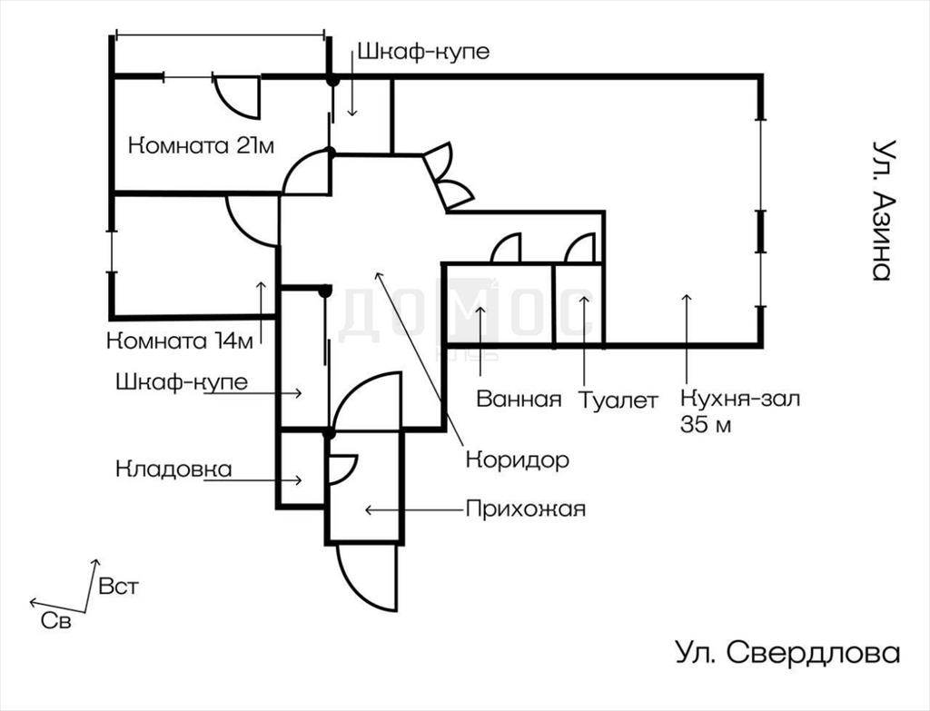 | Трехкомнатная квартира по ул. ул. Азина, 30 в Екатеринбурге |