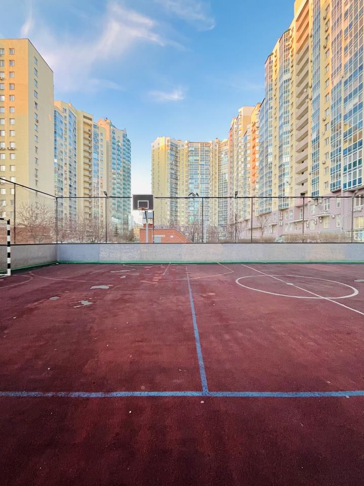 <p>- уютный, большой, зеленый двор с кортом и большим количеством площадок для любых возрастов, клумбы и подсветки, зимой устанавливают елки во дворе, заливают каток, хорошее освещение двора,</p>