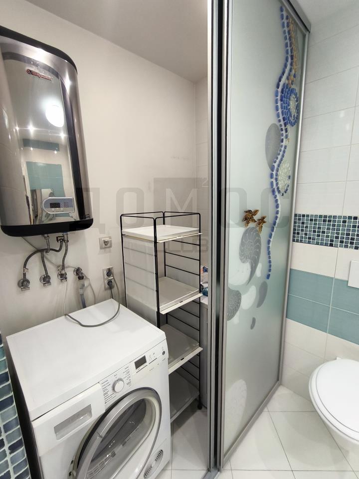 <li>увеличе нный сан/узел с швейцарской душевой кабиной и нишей для стиральной и сушильной машины с бойлером,</li>