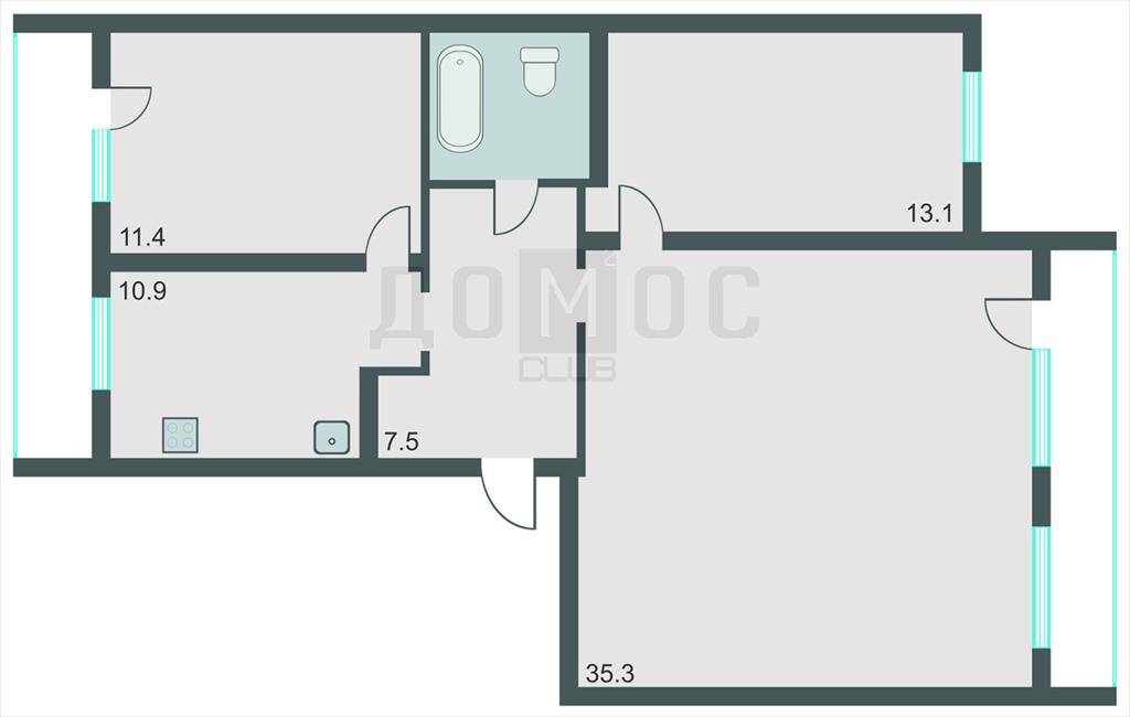 Трехкомнатная квартира 81,80 м2 по ул. пер. Замятина 28 за 7290000 руб. |