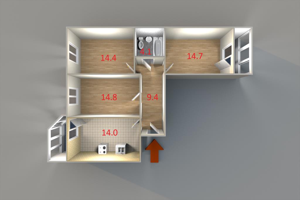 | Трехкомнатная квартира по ул. ул. Ракетная, 20 в Екатеринбурге |