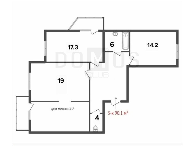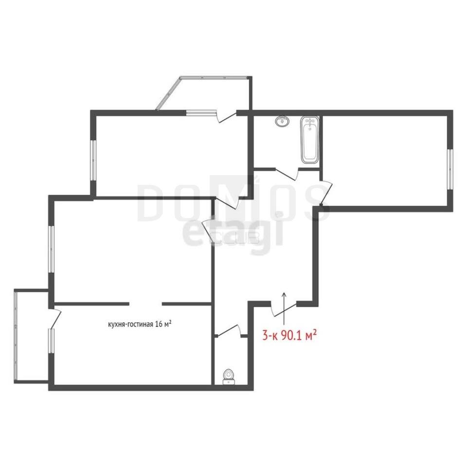 общая 90,1 м2, жилая 0 м2, кухни 16 м2 |