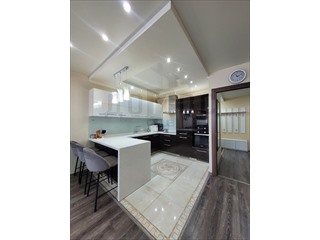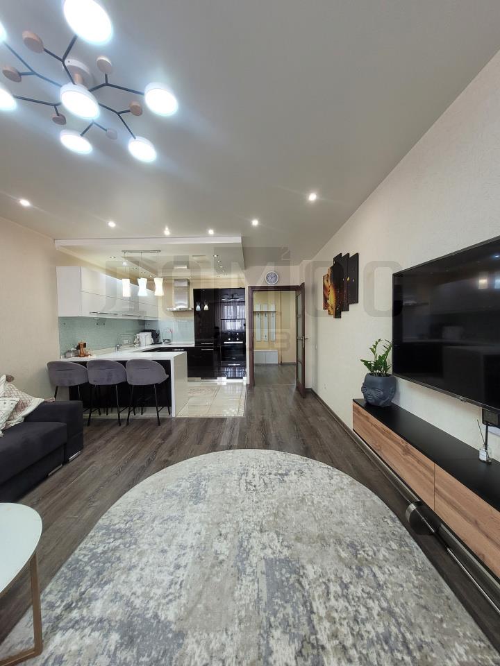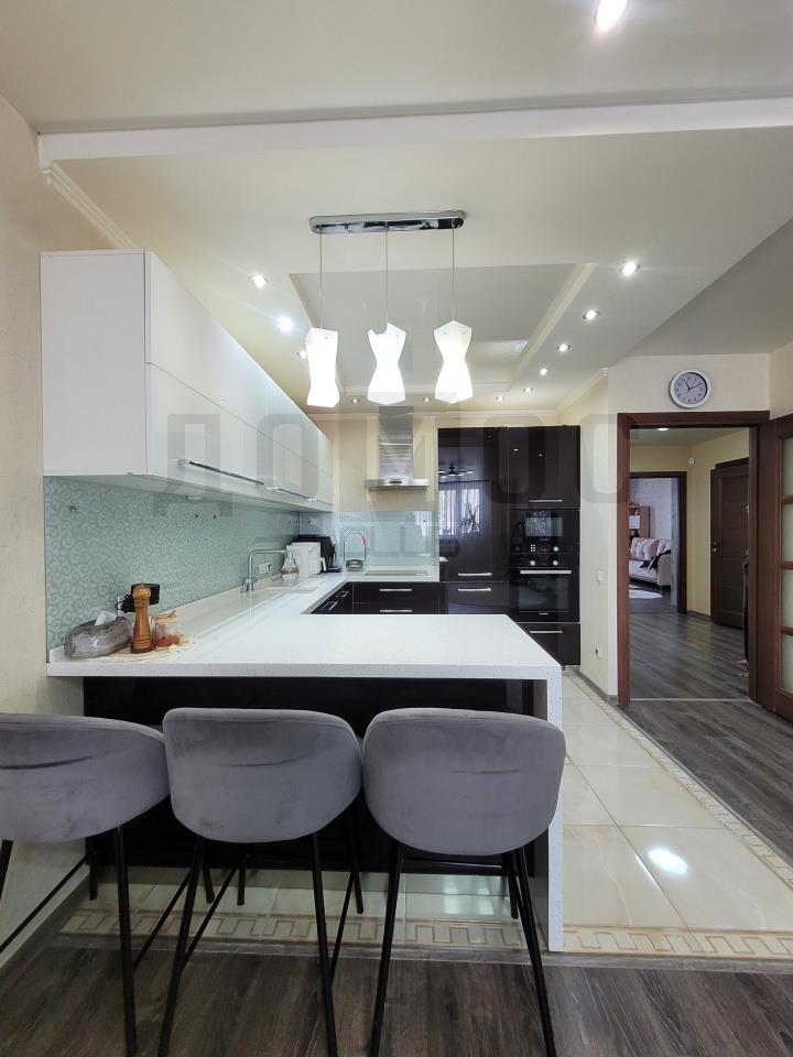 <p>🔸 Кухня-гостиная 32 м² с островом. Гарнитур на заказ (Ториком), фурнитура Blum, столешница. Техника Bosch (духовка, СВЧ, посудомойка, варочная поверхность), холодильник Indesit (Италия), вытяжка Samsung. Раковина и смеситель Blanco (Германия). Тёплый пол.</p>