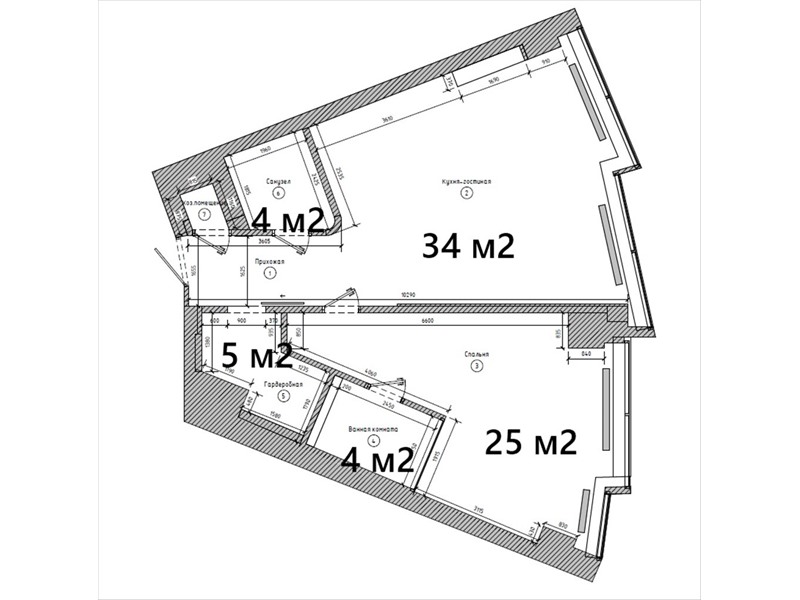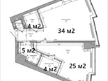 Апартамент имеет функционал 2 комнатной квартиры: спальня 25 м2, большая кухня-гостиная 34 м2, 2 санузла, гардероб, хоз.помещение.