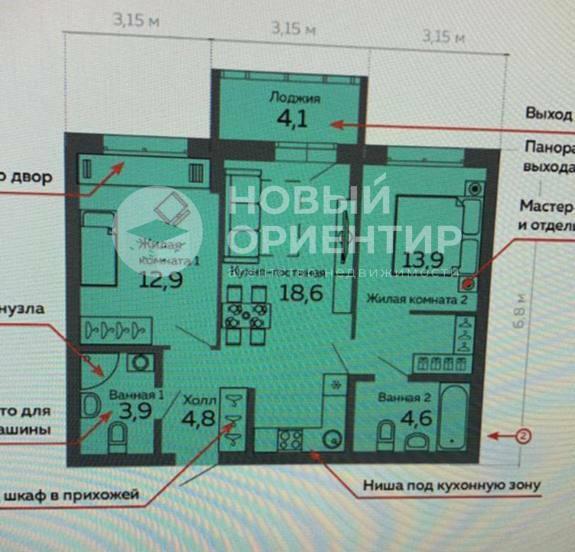 Двухкомнатная квартира 59,70 м2 по ул. ул. Данилы Зверева 17а за 10900000 руб. |