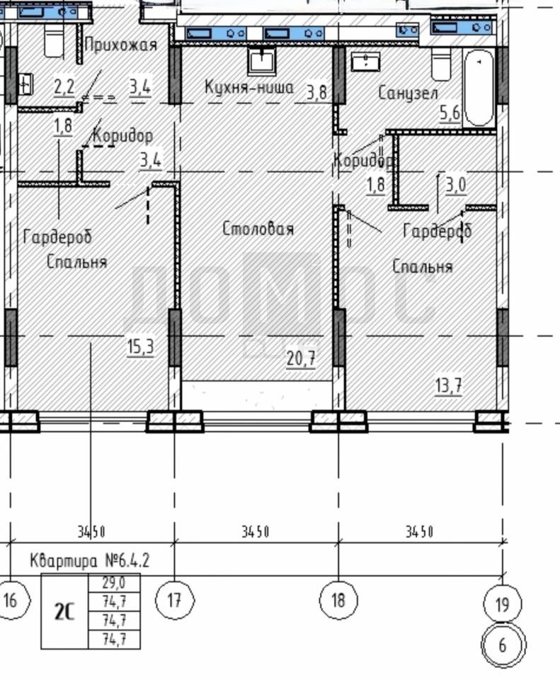 общая 74,8 м2, жилая 29 м2, кухни 24,5 м2 |