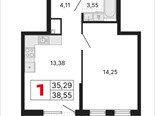 общая 38,55 м2, жилая 14,25 м2, кухни 13,4 м2 |