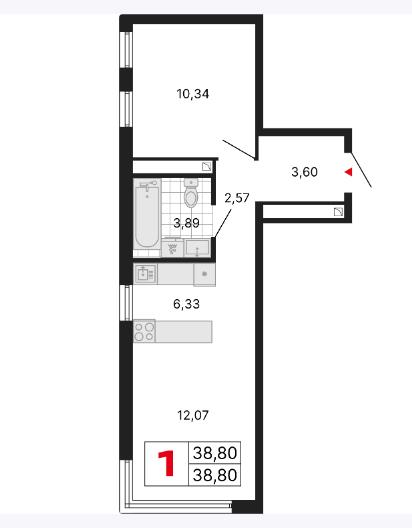 общая 38,8 м2, жилая 10 м2, кухни 18,4 м2 |