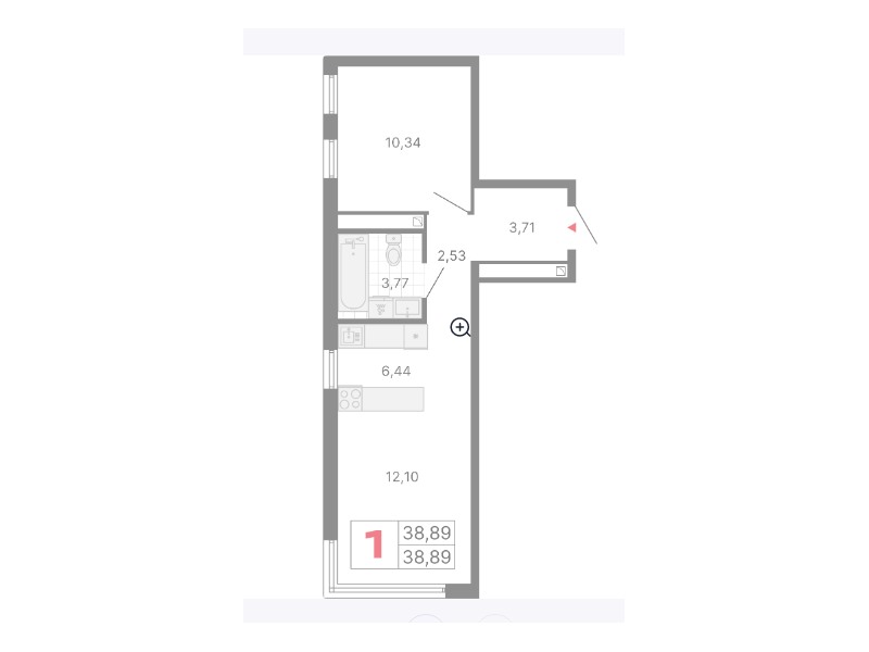 общая 38,8 м2, жилая 22,44 м2, кухни 6,5 м2 |