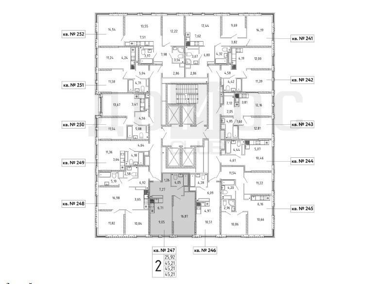 общая 45,1 м2, жилая 16,87 м2, кухни 15,76 м2 |