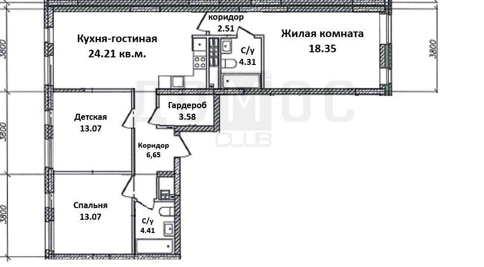| Трехкомнатная квартира по ул. ул. Счастливая, 3 в Екатеринбурге |