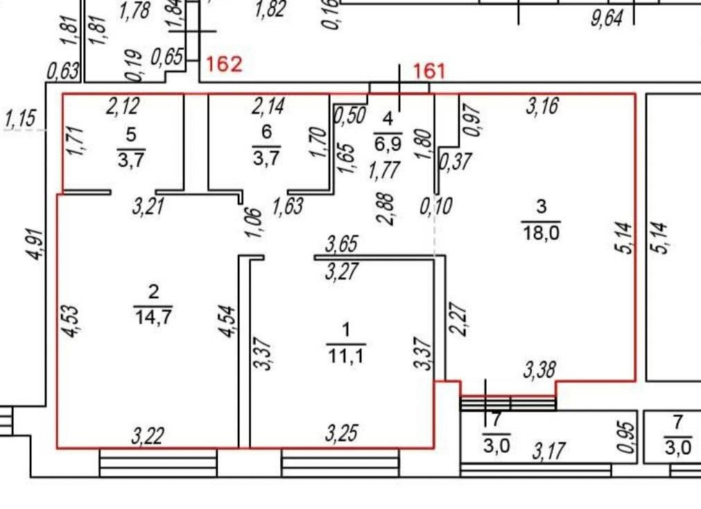 общая 61,3 м2, жилая 37,8 м2, кухни 18 м2 |