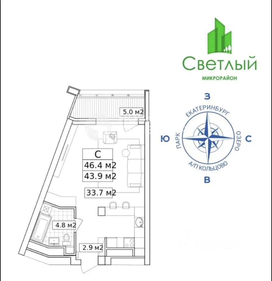 | Однокомнатная квартира по ул. Г. Екатеринбург, мкрн. Светлый, 5 в Екатеринбурге |