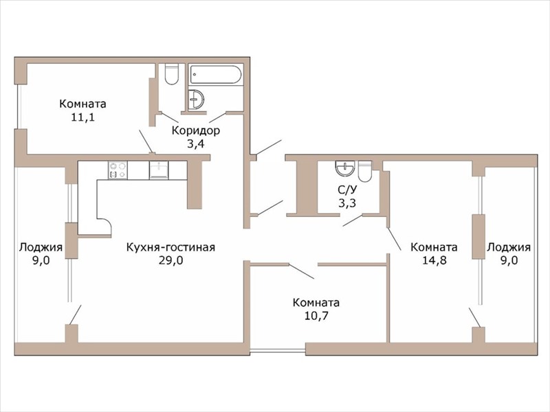 Трехкомнатная |