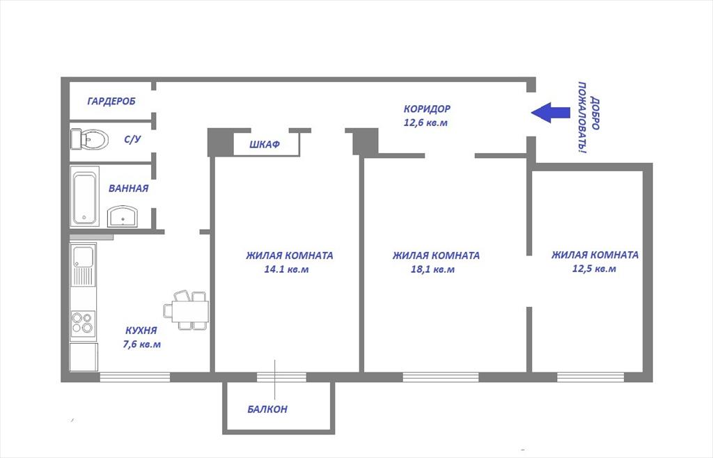 Трехкомнатная |