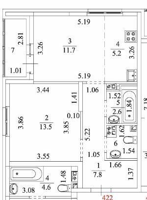Однокомнатная квартира 43,00 м2 по ул. ул. Отрадная 1 за 6700000 руб. |