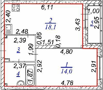 Однокомнатная квартира 41,10 м2 по ул. ул. Крауля 170 за 6300000 руб. |