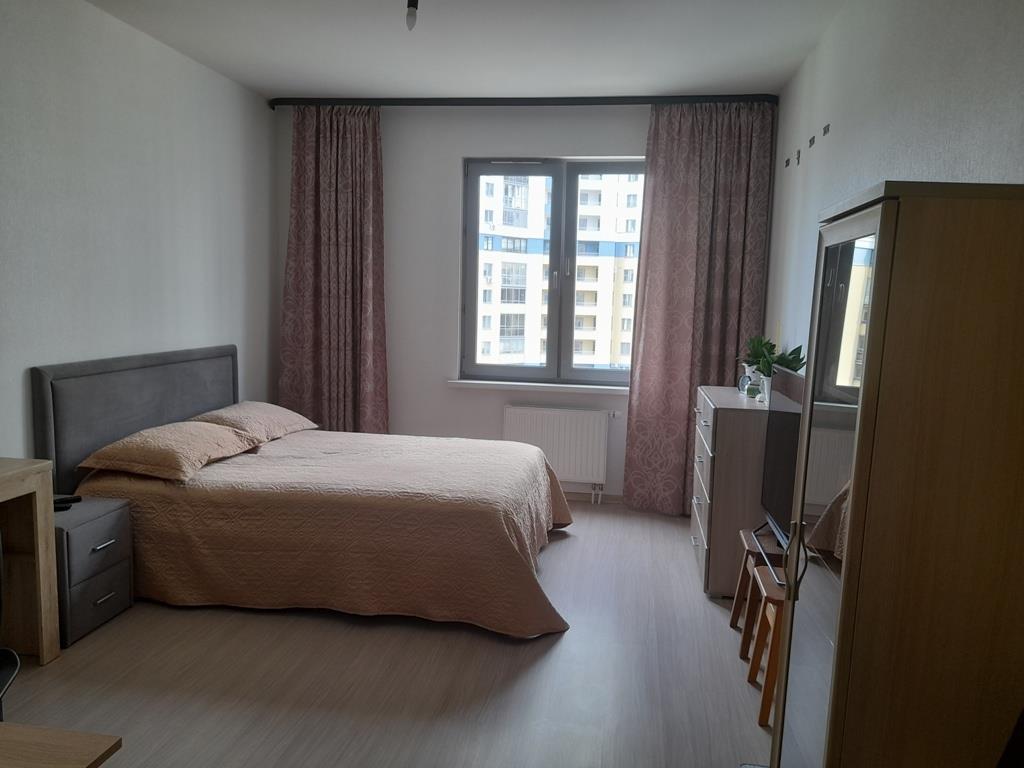 | <p>ПРОДАЁТСЯ прекрасная однокомнатная квартира в ЖК Флагман. Просторная кухня 13,5м, жилая комната 17м, большой коридор 7м, и совмещенный санузел 6м. Балкон 3,9м с видом во двор. Окна выходят на запад. Шумоизоляция хорошая. Счетчики э/э, холодной/горячей воды, отопления расположены на этаже. Коммунальные платежи низкие. Домофон, интернет, телевидение, железная дверь. Соседи интеллигентные, в квартире всегда тишина.</p>
