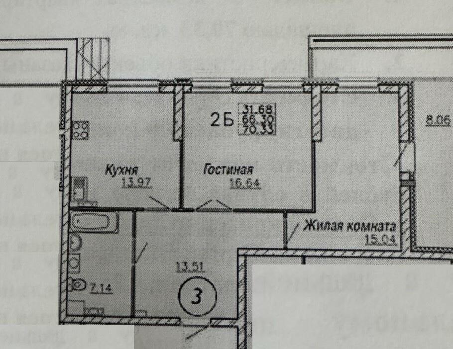 <p>— Общая площадь: 65,4 м, включает просторную комнаты и удобную кухню.</p>