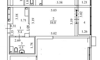 общая 26 м2, жилая 16 м2, кухни 5 м2 |