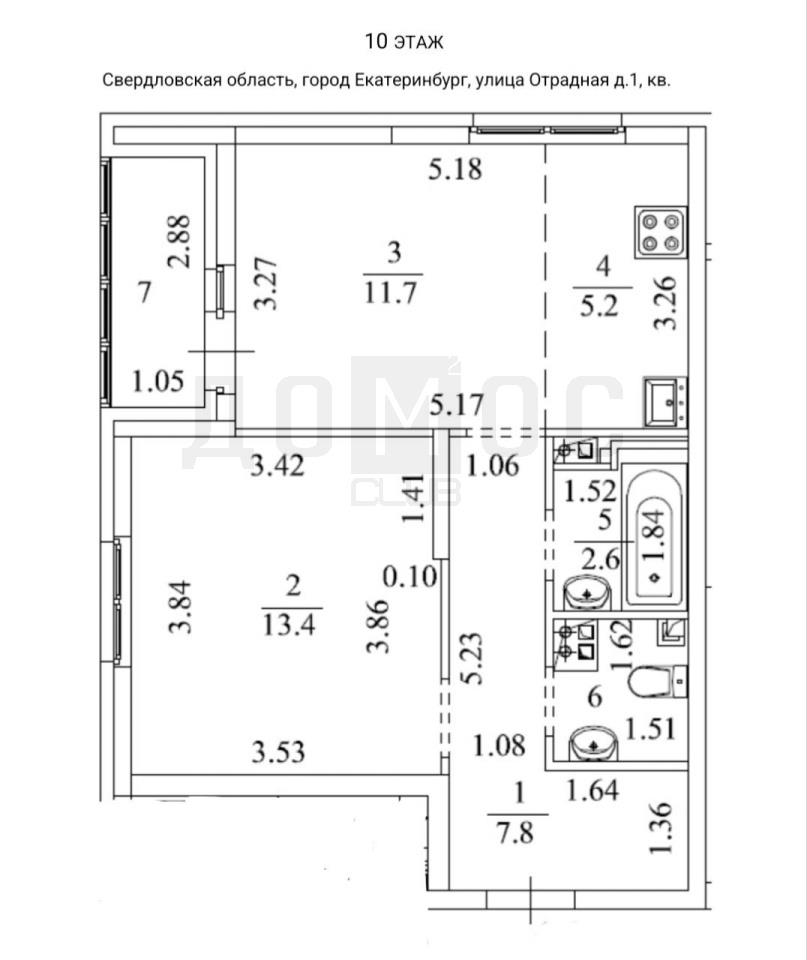 | Однокомнатная квартира по ул. ул. Отрадная, 1 в Екатеринбурге |