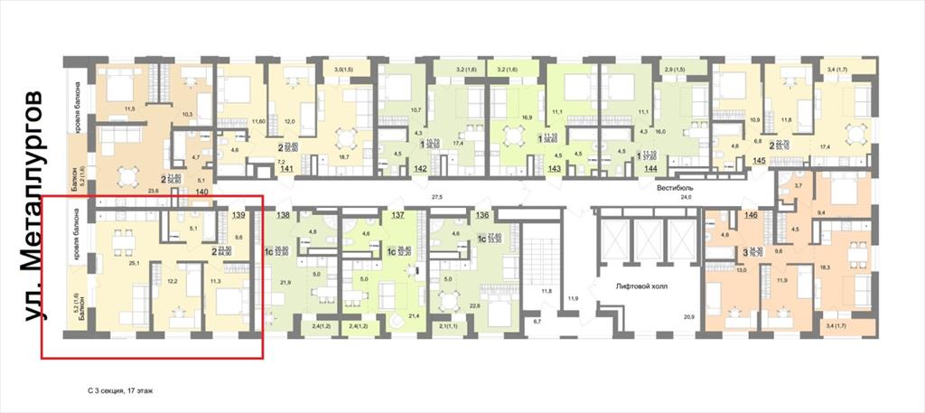 Двухкомнатная квартира 64,90 м2 по ул. ул. Металлургов/Лоцмановых стр. С3 за 8137703 руб. |