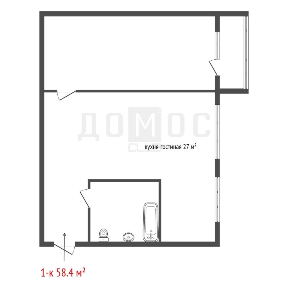 общая 58,4 м2, жилая 25 м2, кухни 7 м2 |
