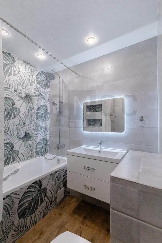 <p>Ванная комната, выполненная в современном стиле, просторная, стильная раковина и зеркало с подсветкой. Раздельный сан узел, с качественным ремонтом.</p>
