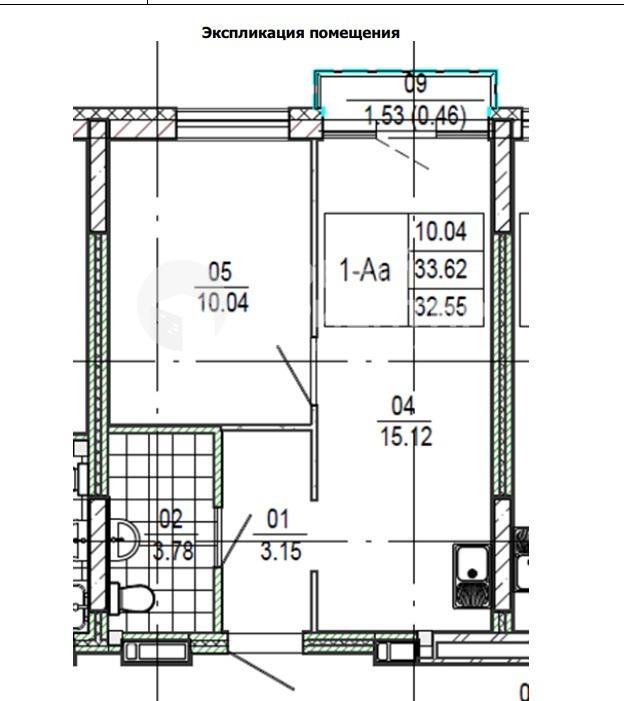 общая 33,6 м2, жилая 10 м2, кухни 15 м2 |