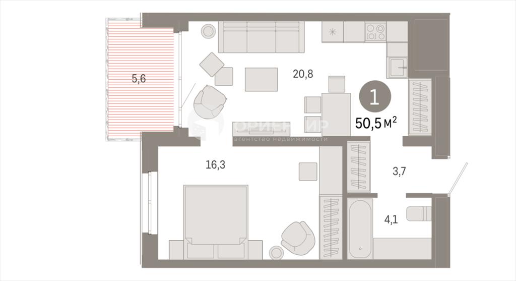 общая 51 м2, жилая 16,3 м2, кухни 20,8 м2 |