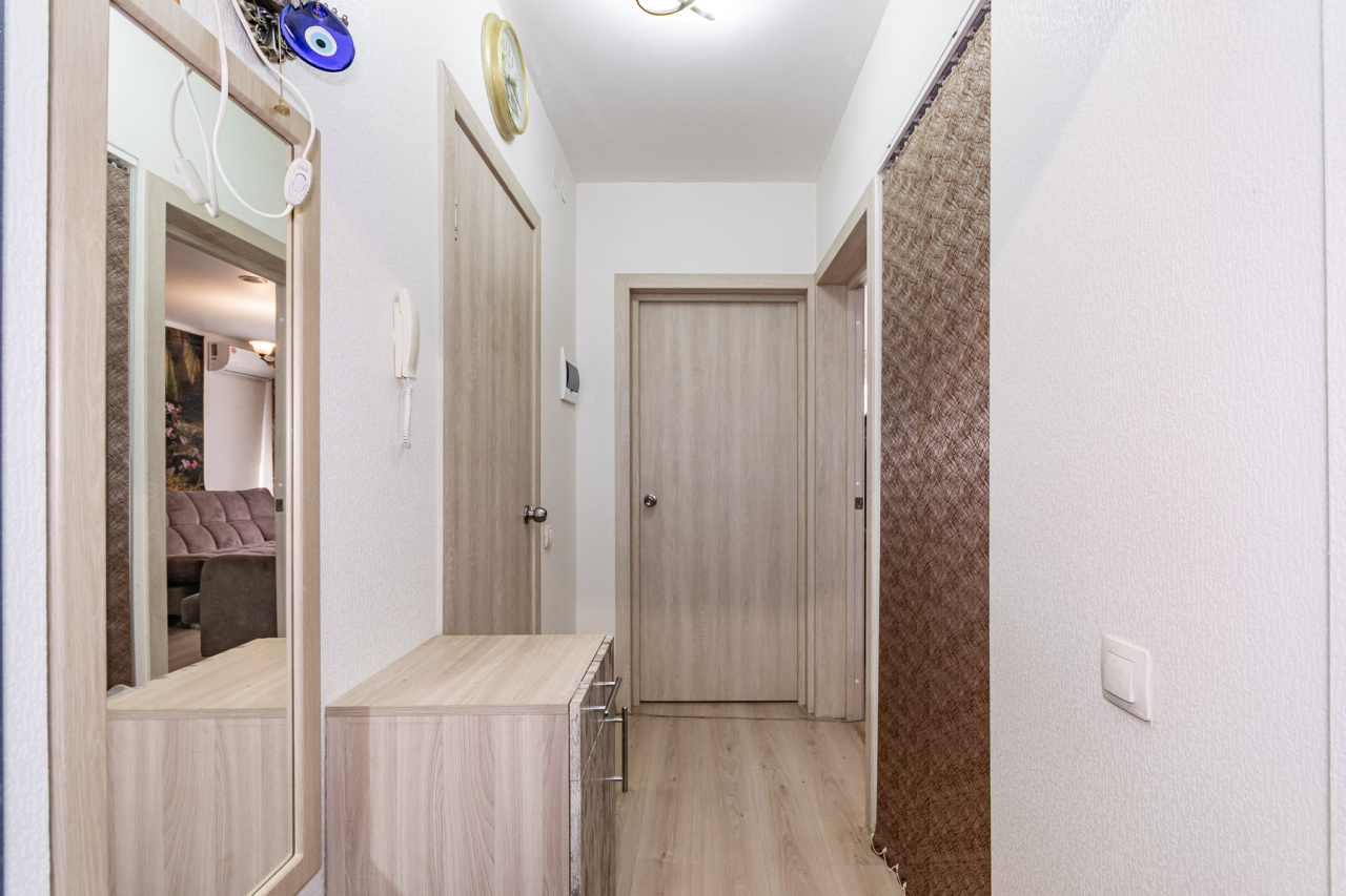 | Продам светлую, теплую 2-х комнатную квартиру с отличной планировкой на 6 этаже 15 этажного дома, расположенном в одном из самых красивых и зеленых районов города.<br />Комнаты правильной формы: кухня-гостиная, спальня, просторный коридор, с удобной нишей под шкаф-купе, санузел совмещен. В квартире сделана шумоизoляция, натяжной потолок с освещением, окно в кухне-гостинной установлено новое. Установлен кондиционер. <br />Из мебели и техники остается: кухонный гарнитур, варочная поверхность, духовой шкаф, вытяжка, шкаф в спальне.<br />Заезжай хоть завтра! В квартире свежий ремонт, есть вся необходимая техника ни о чем не думай, просто живи.<br />Вид из окна на солнечную сторону.<br />Подъезд чистый, регулярно производится уборка, есть грузовой и пассажирский лифт. Во дворе детская площадка.<br />Инфраструктура района имеет все для комфортного проживания: детские сады, школы, детские развивающие центры. Магазины, аптеки.<br />Для прогулок и отдыха неподалеку есть парк «Каменные палатки» «Шарташский лесопарк».<br />Хорошая транспортная доступность, остановка транспорта от дома всего в парах минут ходьбы.<br />Документы в порядке, собственник один. Покажу в любое удобное время!