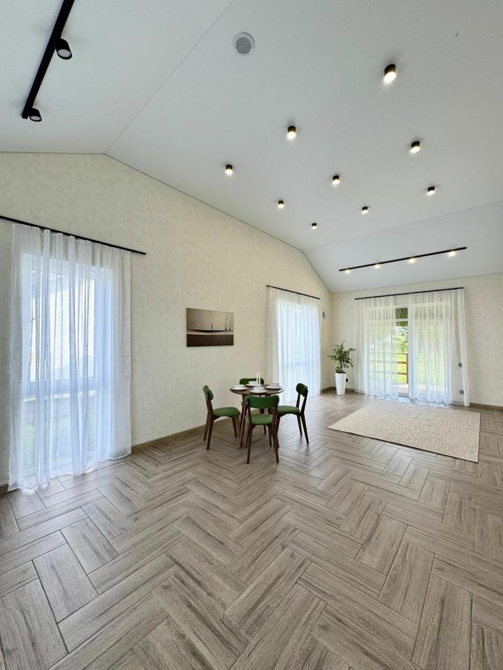 <p>-декор фасада рейка из лиственницы, обработанной австрийским маслом;</p>