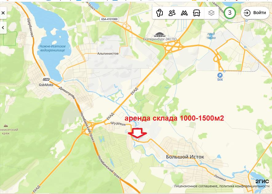 | Тёплый склад <b>1000м2,</b> расположен в <b>пос.Большой Исток, 24 км от Екатеринбурга</b>. Охраняемая территория. Высота потолков – <b>10 метров, до балок - 8 метров.</b> Пол – бетон.<b> 3 ворот, 2 входа.</b> <b>Санузел, душевая, бытовое помещение</b> (кабинет).<br /><br /><b>ХАРАКТЕРИСТИКА ОБЪЕКТА:</b><br />Общая площадь 1500 м2: <b>сдается 1000м2</b> (также<b> можно арендовать целиком), </b>(18*72м), 1 этаж<br />Мощность –<b> 30 кВт</b><br />Высота потолков – <b>10 метров/8 метров до балок</b><br /><b>Ворот -3, в</b><b>хода -2 </b><br />Освещение <br />Отопление <br />Санузел, душевая, кабинет<br />Пол – бетон, ровный<br /><br /><b>ДОПОЛНИТЕЛЬНАЯ ИНФОРМАЦИЯ:</b><br /><b>Арендная ставка: 600руб/м2 + НДС 5% (отопление включено)</b><br /><b>Коммунальные платежи оплачиваются дополнительно (эл.энергия, вода)</b><br />Обеспечительный платеж в размере одного месячного платежа <br />Без дополнительной комиссии для арендатора