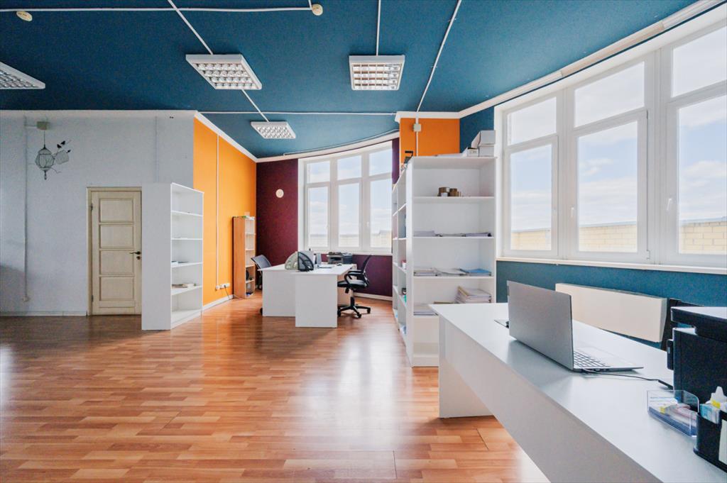 <p> Высота потолков в помещении 3,5 м. Помещение зонировано на рабочие места, имеется выделенная кухонная зона, отдельно есть закрытое место под склад (в данный момент это архив компании), два туалета, есть место под душевую при необходимости. Окна пластиковые, три кондиционера. Ремонта капитального не требуется, все в приличном состоянии! Коммунальные услуги летом 12 000 р., зимой порядка 20 000 р. </p>