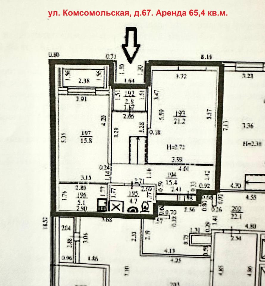 | <b>Торгово-офисное помещение в жилом доме.</b> Под: <b>офис, бьюти-услуги, йога-клуб, аптека, медпункт, массажный салон, детский клуб.</b> Высота потолков <b>2,7 метра. Мощность 15 кВт.</b> Отдельный вход. <b>Два кабинета 21,2м2 и 15,8м2, 1 подсобное помещение (кухня), санузел.</b> Наземная придомовая парковка на 50 м/мест. <b>Место для вывески. </b>Соседи: ОЗОН, Яндекс Маркет, барбершоп, детская поликлиника, Жизнь-март, Верный и др. <br /><br /><b>ХАРАКТЕРИСТИКА ОБЪЕКТА:</b><br />Общая площадь – <b>65,4 кв.м , 1 этаж, отдельный вход</b><br />Возможность размещения рекламы на фасаде<br /><b>Планировка кабинетная</b> <br /><b>Два кабинета 21,2 м2; 15,8м2</b><br />Электрическая мощность <b>15 кВт</b><br />Потолки высотой <b>2,7 м</b><br />Охранно-пожарная сигнализация<br />Санузел в помещении.<br /><b>Качественный ремонт:</b> пол – керамогранит, плитка, стены – под покраску, потолок – Армстронг<br /><b>Встроенный шкаф-купе, мебель офисная</b><br /><br /><b>ДОПОЛНИТЕЛЬНАЯ ИНФОРМАЦИЯ:</b><br />Арендная ставка в месяц: <b>первые 3 месяца - 1000р./м2, с 4 месяца - 1200р. /м2</b><br />Обеспечительный платеж в размере одного месячного платежа <br /><b>Коммунальные платежи оплачиваются дополнительно</b><br />Договор аренды с ИП, без дополнительной комиссии для арендатора.