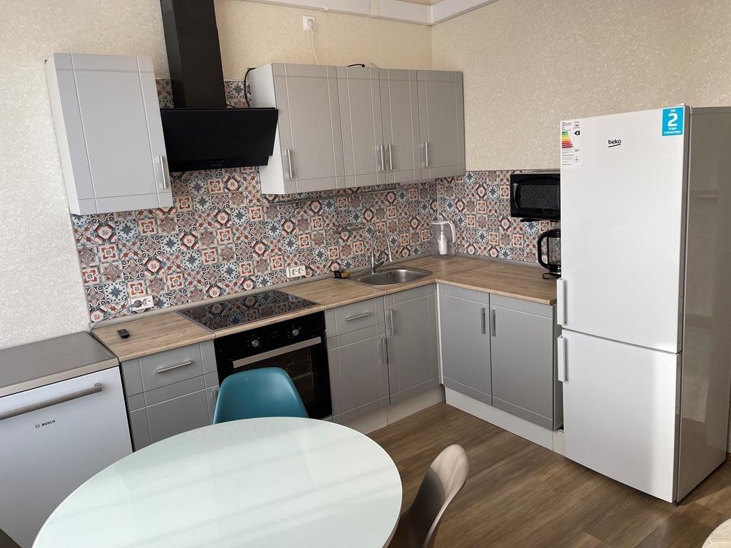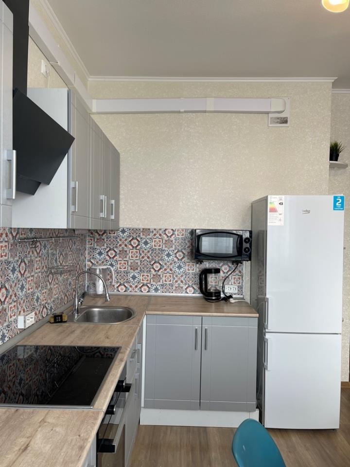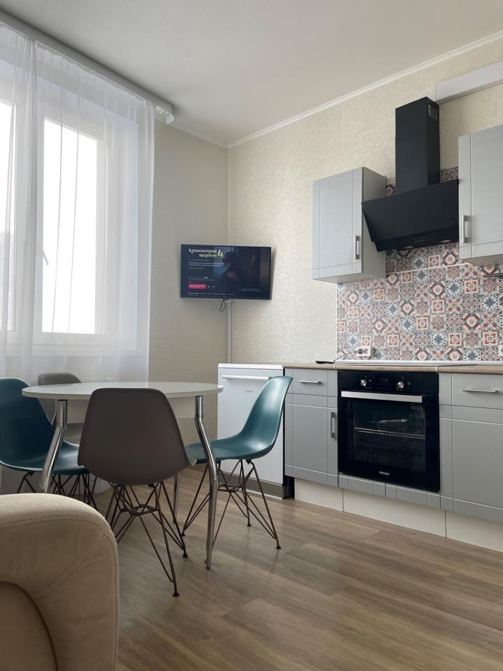 <p>КУХНЯ: кухонный гарнитур с варочной поверхностью, духовой шкаф, микроволновка, вытяжка, посудомоечная машина BOSCH, чайник, телевизор, стол, 4 стула, раскладной 2- х местный диван, гардина, штора, потолочный светильник.</p>
