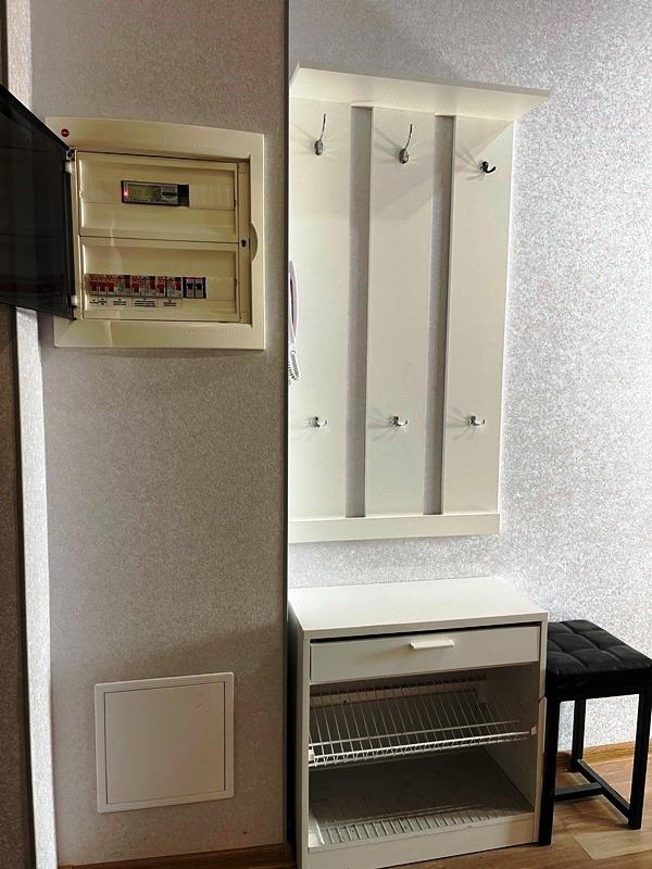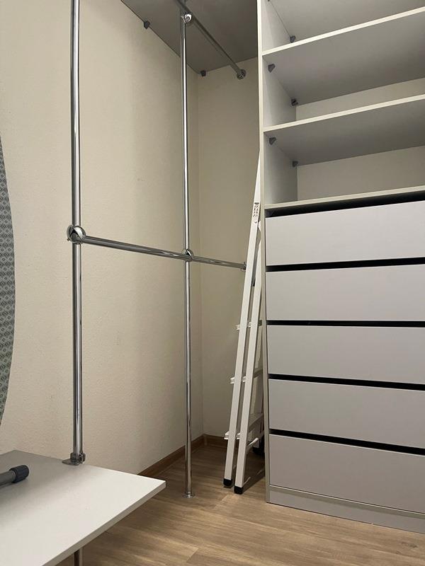<p>ГАРДЕРОБНАЯ: кронштейны и полки для вещей, гладильная доска, стремянка.</p>