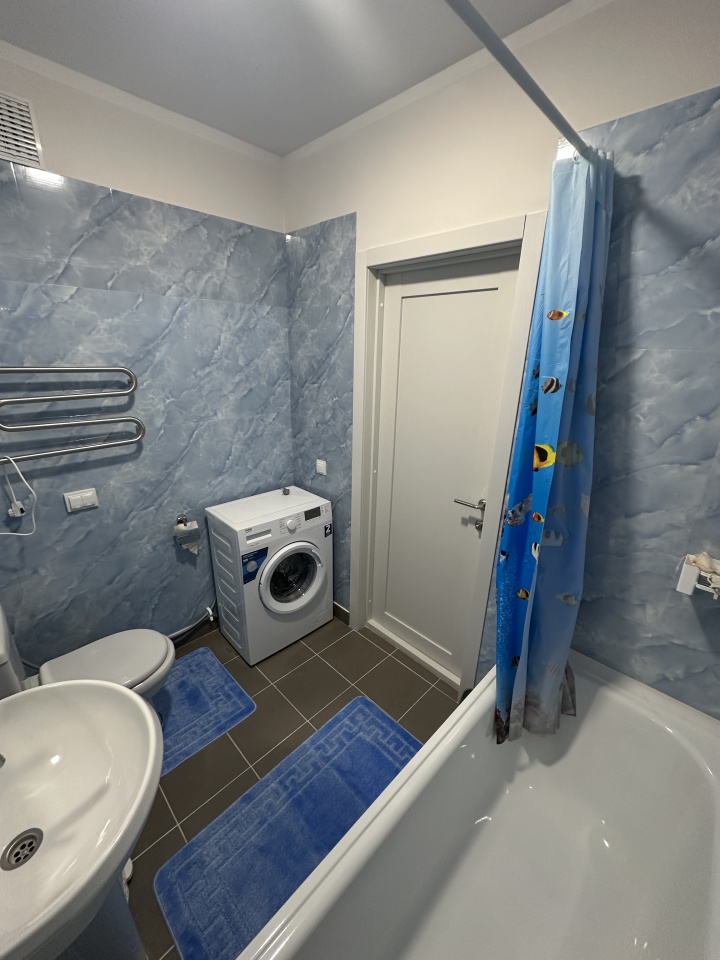 <li>Санузел: стиральная машина Beko, полотенцесушитель, сушилка для белья. Всё необходимое для комфорта.</li>