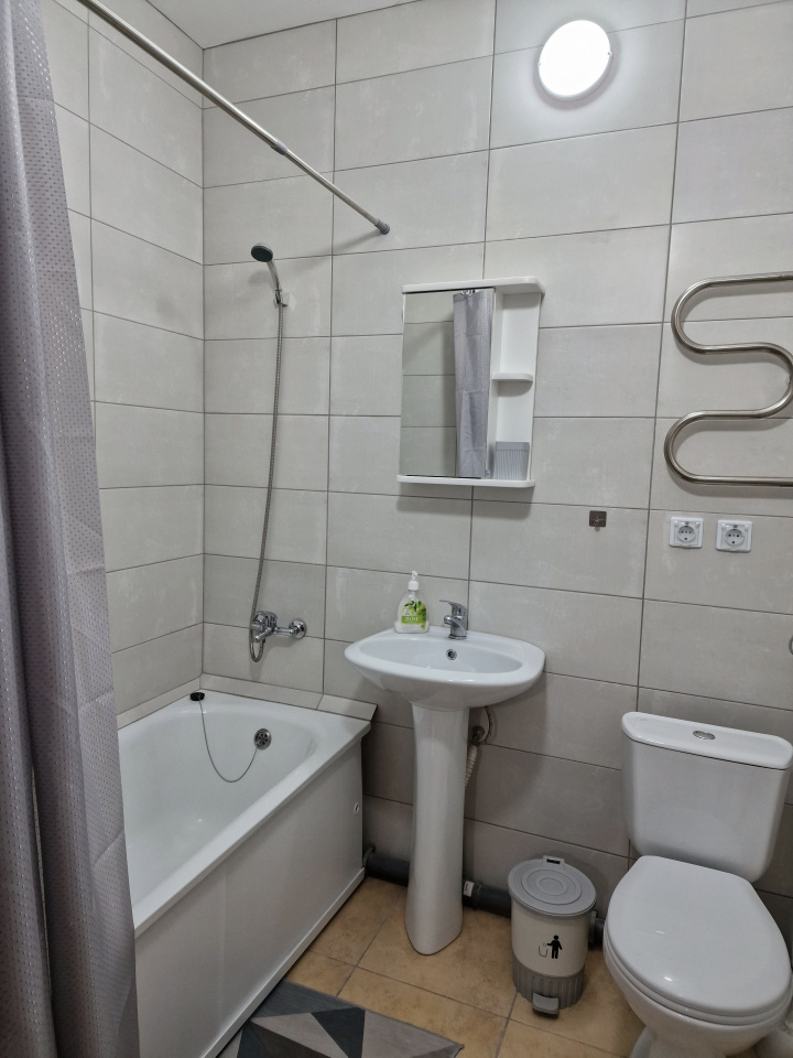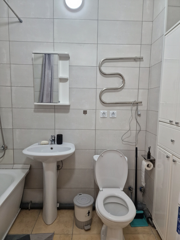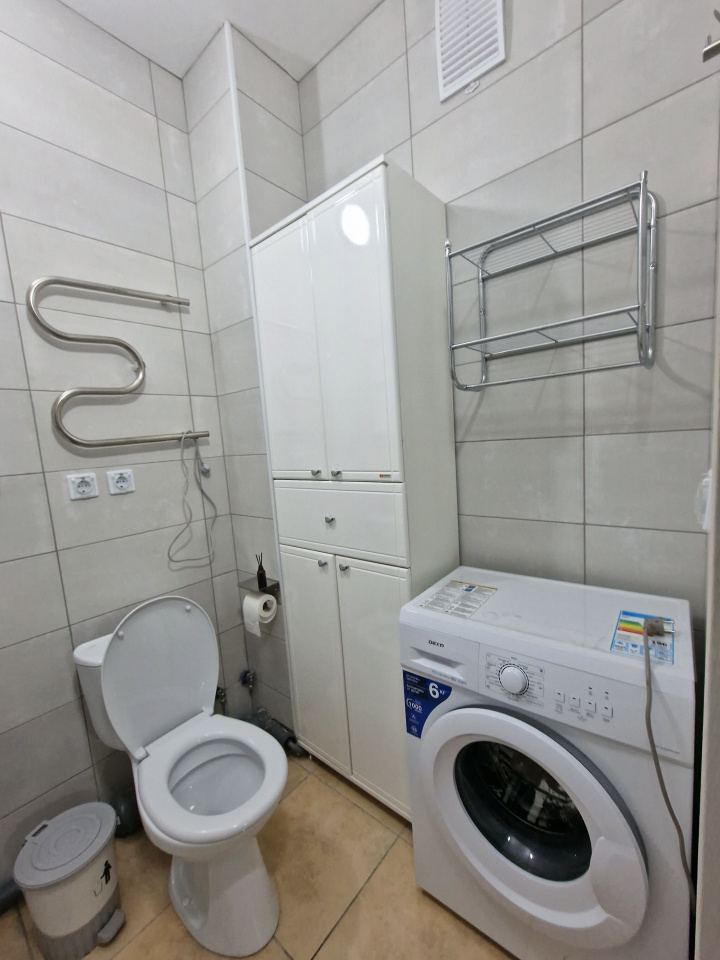 <p>В сан/узле новая сантехника, стиральная машина, шкаф для белья и бытовой химии.</p>