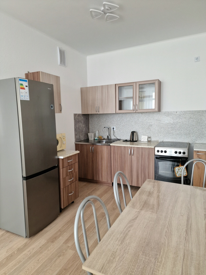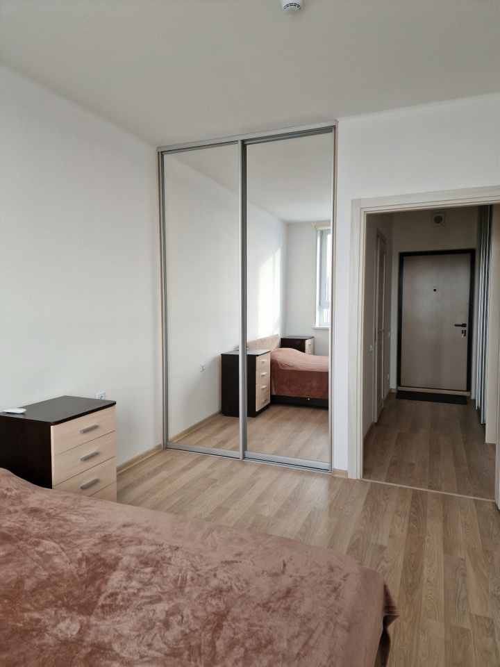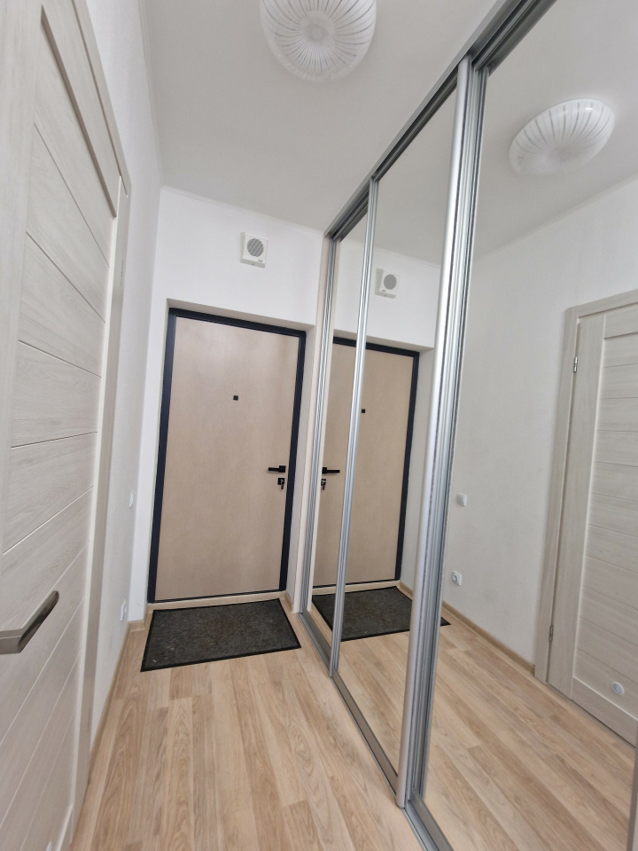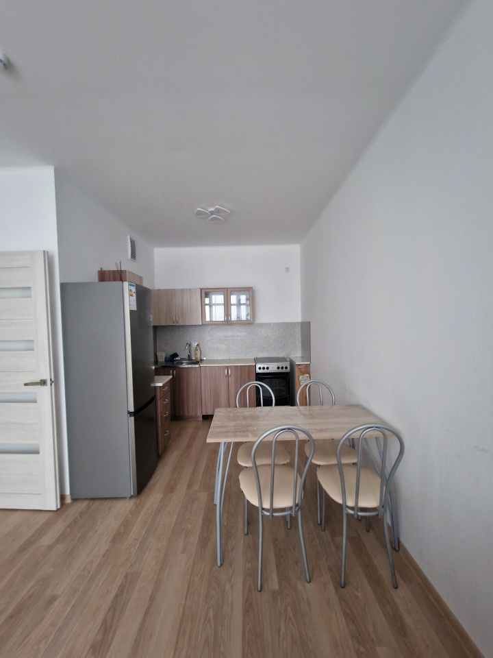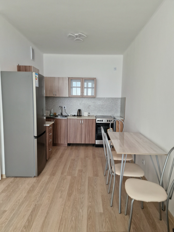 <p><b>Квартира укомплектована всей необходимой мебелью</b>: 2х местная кровать в комнате, 2 зеркальных встроенных шкафа-купе в спальной и в прихожей. В кухонной зоне: кухонный гарнитур, холодильник, микроволновка, чайник и необходимая кухонная утварь, также стол со стульями и т.д.</p>