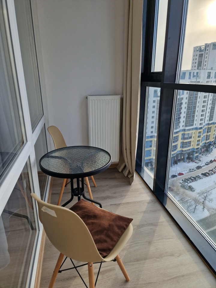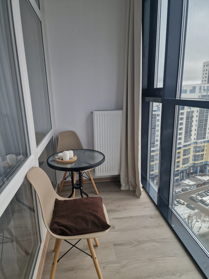 <p>Кухня гостиная 19.4 кв.м., которую продолжит теплая лоджия – терасса с панорамными окнами в пол (по проекту установлены 2 теплых радиатора), спальная комната 12,3 кв.м.</p>